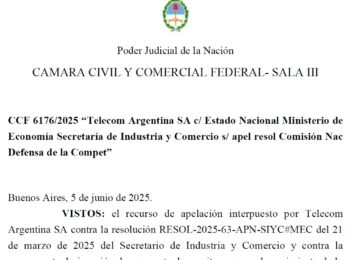 Además, la sala III de la Cámara Civil y Comercial Federal, ordenó al Secretario de Industria y Comercio que “se abstenga de disponer cualquier medida que sea contraria al efecto suspensivo con que se concede el recurso”, es decir la consolidación de Telefónica en Telecom Argentina