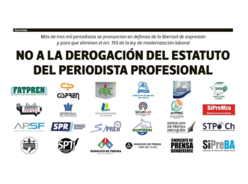 La solicitada cuestiona el artículo del proyecto de reforma laboral que reemplaza los estatutos por la ley de contratos de trabajo general. Buena parte de las redacciones de Clarín y La Nación, entre las firmas destacadas junto a la de comunicadores y ex funcionarios kirchneristas
