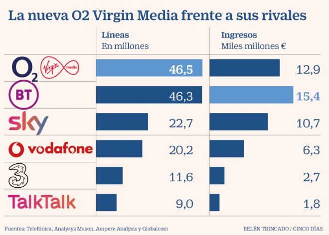 Telefónica se consolida en Europa y desconsolida en Latam. El presidente de Telefónica, José María Álvarez Pallete, celebró esta última semana el acuerdo de fusión entre su filial británica O2 y Virgin Media, por que la telco hispana ingresará además 5700 millones de libras esterlinas. La nueva empresa fusionada no será controlada por ninguno de los dos accionistas, tendrá un management al 50% y presidencia rotativa, suma 46 millones de clientes, tiene un valor de 43.500 millones de euros y le disputará el liderazgo a BT, según contó El País. La fusión tiene condiciones naturales dado que O2 es básicamente un operador móvil y Virgin Media se centra en TV paga y banda ancha fija.
