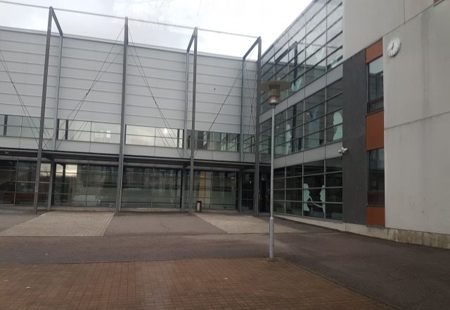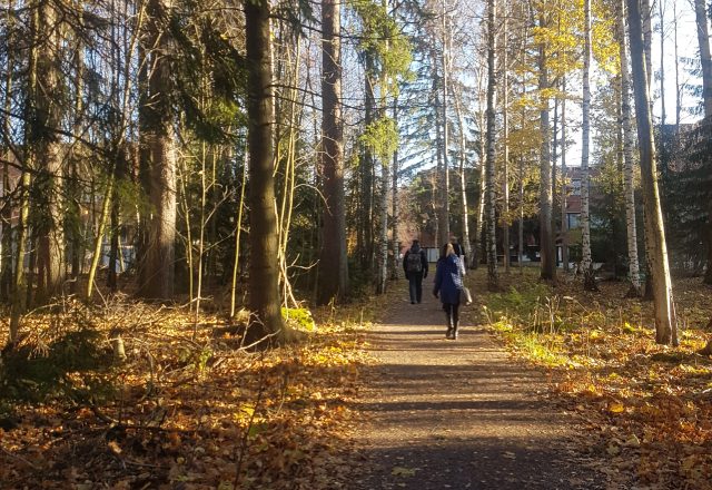 - El ingreso al campus de Aalto en Espoo