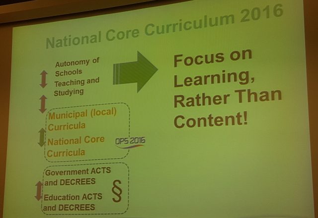 «La currícula principal de la escuela finlandesa se revisa aproximadamente cada diez años. La última revisión se publicó en 2016, tiene 500 páginas y definió siete áreas principales, entre ellas las competencias en TIC -que hace años dejó de ser una materia para convertirse en una estrategia de enseñanza que atraviesa todas las disciplinas-, habilidades para la vida laboral, emprendedorismo y la construcción de un futuro sostenible»