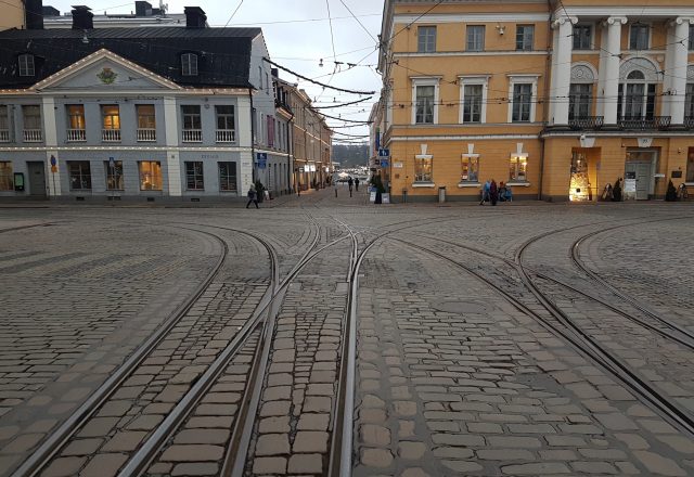 - El centro histórico de Helsinki, con las vías por las que circula su intenso sistema de tranvías