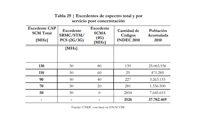 La firma resultante de la concentración superaría el tope de 140 MHz fijado por el Ente Nacional de Comunicaciones (Enacom) en múltiples localidades, con excesos de hasta 130 MHz.