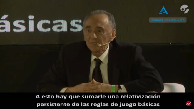 Como el resto de los expositores, también se refirió a los políticos: “Dejen el arco quieto por un rato, no lo muevan. Si no saben qué hacer, no hagan nada, quédense quietos. Si no quieren mejorar las cosas o no pueden, no hagan nada. Hay que dejar de resetear la Argentina como si fuera una computadora. Hay que gastar responsablemente, como cada uno de nosotros hace en su casa. Cuando hay, se gasta; cuando no, no. Es un principio tan básico que nos lo olvidamos. Es la base de poder hacer que la inflación baje, que dejemos de emitir y que tengamos una moneda”, desarrolló (a partir de nueve puntos que llevó escritos en un papel).