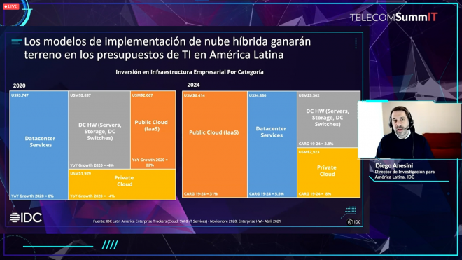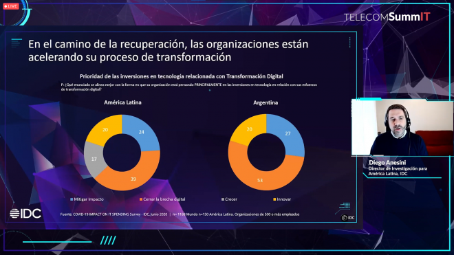 “Si vemos los presupuestos de tecnologías de la información de las organizaciones de la región, el 85% de las organizaciones de América Latina van a mantenerlo o aumentarlo este año. En Argentina este efecto se da de la misma manera, e incluso un poco más acentuado, por motivos como lo puede ser la mayor necesidad de pagar la deuda digital”, indicó. Anesini anticipó que ese dinero se destinará principalmente en seguridad de IT, inteligencia (BDA, AI, BI, ML), modernización ERP, cloud pública, y la consolidación de la infraestructura.