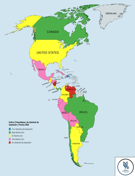 La libertad de expresión y de prensa en las Américas registró su nivel más bajo desde que se creó el Índice Chapultepec, según la sexta edición del informe elaborado por la Sociedad Interamericana de Prensa (SIP). El promedio regional cayó a 47,1 puntos sobre 100, el registro más bajo de las seis ediciones del indicador, que analiza la situación en 23 países del continente.