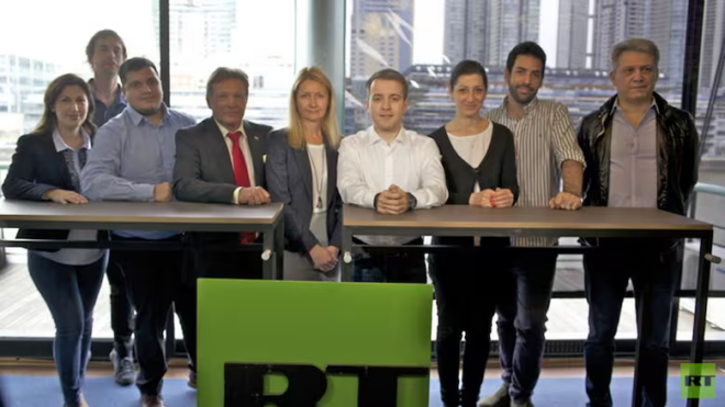 El canal cuenta con una estructura consolidada en América Latina y una corresponsalía en Buenos Aires que funciona como base regional. En su operación participan periodistas y presentadores latinoamericanos -algunos de ellos desde Moscú-, mientras que la producción editorial responde a lineamientos definidos desde Rusia. A lo largo de los años, RT ha desarrollado vínculos con profesionales argentinos y mantiene una presencia activa tanto en televisión como en plataformas digitales, aunque en varios países su alcance se redujo por restricciones impuestas tras la guerra en Ucrania.