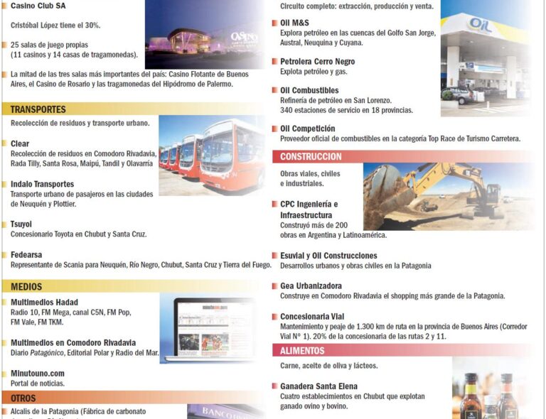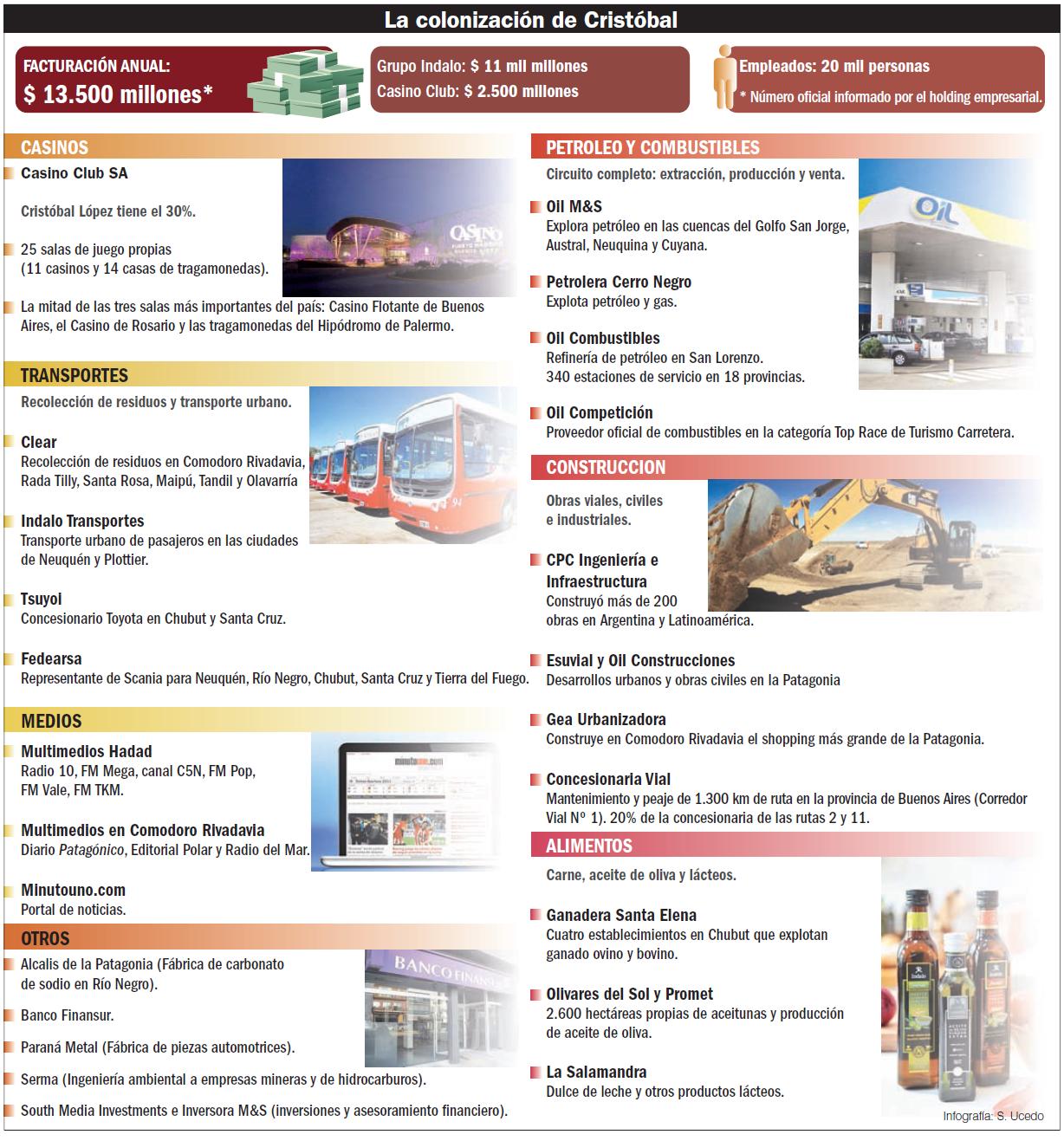 A diferencia de Daniel Hadad, el principal negocio de Cristóbal López no es el periodismo ni los medios de comunicación. Aun después de comprar el exitoso multimedios, sus fuentes de ingresos más importantes seguirán siendo el petróleo y los juegos de azar. Su coincidencia con Hadad es que multiplicó sus ganancias durante los gobiernos kirchneristas.