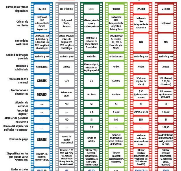 Mientras HBO, Telefe y Turner (y la Justicia internacional) persiguen a los pibes que suben películas a Internet (a los pocos pibes que logran identificar y a los que les decomisan comprometedores CDs con copias truchas -lo siento, a mi me producen cierta ternura-), y una gran parte de la audiencia se queda sin «plan audiovisual»… Aquí les dejo una infografía que produje hace un par de meses y que Belén Tassino transformó en un lindo cuadro de doble entrada.