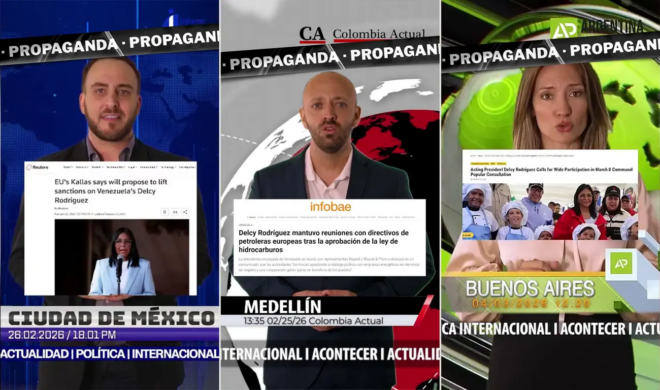 Una red de canales en YouTube que simulan medios internacionales difundió más de 50 videos pagos con contenido favorable a la dictadora venezolana Delcy Rodríguez; los videos fueron realizados en Buenos Aires con actores y locutores y una de las empresas está vinculada con el exgobernador de Chubut, el kirchnerista Martín Buzzi