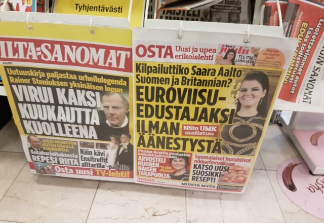 En el hotel Indigo, donde me hospedé muy cerca de la embajada argentina (las relaciones entre ambos países son anteriores a la independencia finlandesa), miré un poco de TV local (hay una cadena pública YLE -se pronuncia ‘ule’- que tiene varias señales). En el piso del noticiero sólo se ven cámaras robóticas (es decir, sin camarógrafos). Los deportes, hockey sobre hielo, patinaje de velocidad sobre hielo y algo de fútbol de la selección finlandesa; una señal de cine -una de las noches me tocó justo una película tipo Acorazado Potemkin, acorde con el carácter de gran ducado de la Rusia zarista que tuvo Finlandia; y en otra señal, un debate sobre los Paradise Papers (en el que también apareció algún finlandés). Hice zapping por el resto de la oferta y me encontré con un show musical, una versión local (o tal vez nórdica) de Gran Hermano y un show de stand up -que más allá del idioma es un género universal-.