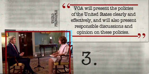 La VOA tiene (o tuvo) como una de sus funciones —según su carta constitutiva o VOA Chart (1976)— la de “presentar las políticas de Estados Unidos de forma clara y eficaz, y también (…) debates y opiniones responsables sobre dichas políticas”. Otra Ley de 1994 se expresa en términos parecidos.