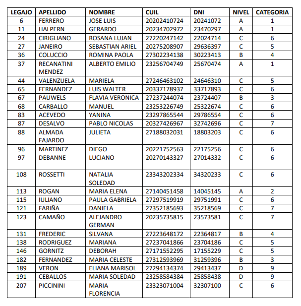 Entre los cargos que fueron puestos en disponibilidad figuran algunos de los primeros empleados en incorporarse, como José Luis Ferrero (legajo 6) y Gerardo Halpern (legajo 11). Ferrero fue director de Comunicación Institucional entre 2015 y 2021 y Halpern llegó a ser director de Análisis, Investigación y Monitoreo entre 2013 y 2018.