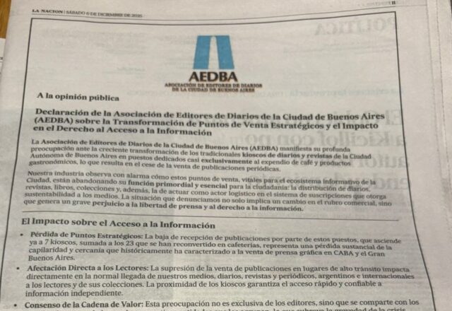 La entidad expresó su preocupación por el avance de cafeterías y otros rubros en puestos, un proceso que -según advirtió- está provocando el cese o la reducción significativa de la venta de publicaciones periódicas en espacios de alta circulación peatonal