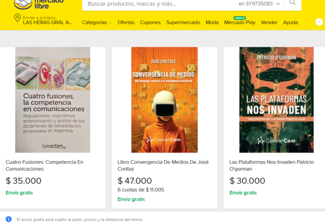 El sello editorial del sitio comenzó a vender en la plataforma las versiones impresas de Convergencia de medios: del lenguaje natural a la inteligencia artificial, de José Crettaz; Las plataformas nos invaden: guía para entender las nuevas reglas de juego, de Patricio O’Gorman; y Cuatro fusiones, la competencia en comunicaciones, de Roberto H. Iglesias; próximos nuevos lanzamientos