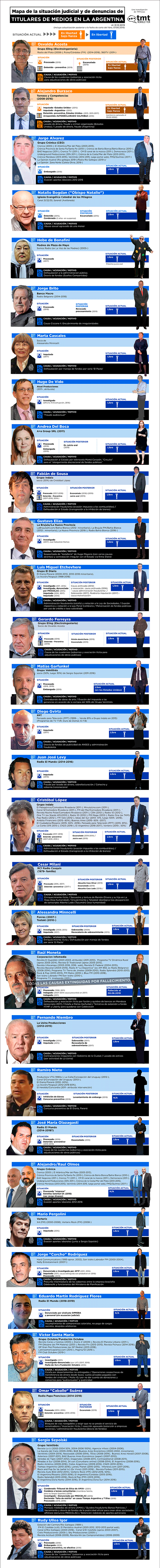 Debido a la complejidad de las situaciones, esta infografía es muy esquemática y no puede leerse sola sino acompañada del texto más extenso que detalla en forma desarrollada los medios correspondientes, así como las causas/acusaciones/denuncias. Ese texto también cuenta con las definiciones y los criterios de inclusión precisos.