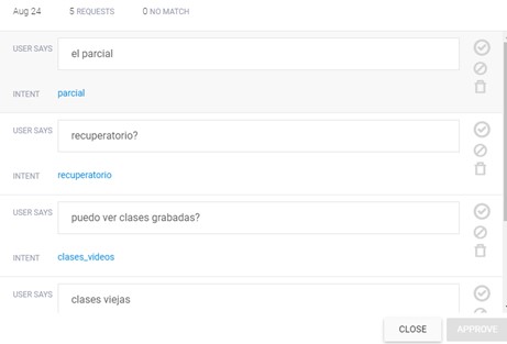 En esta línea, el Profe Robot tuvo interesantes interacciones con l@s estudiantes de la asignatura. Como logro fehaciente se observó un interés manifiesto entre alumnos de comunicación digital acerca del voicebot así como del universo bot en general. Es decir, se realizaron interacciones de consulta que sirvieron como complemento a las clases: se pudo observar y tomar registro de las inquietudes de estudiantes, así como de interlocuciones que podían ser consideradas en futuros “entrenamientos” de la herramienta (consultas bibliográficas, conceptuales, sugerencias, etc).