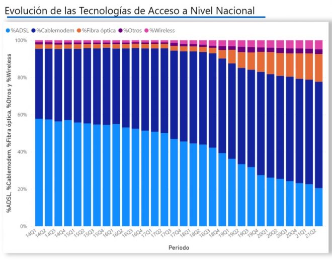 No obstante la ralentización del crecimiento de la fibra óptica, en general la Argentina sigue teniendo una muy buena penetración del acceso a Internet en los hogares. Durante el primer semestre de 2021, el país registró un incremento del 9,2% en el total de accesos fijos a Internet, que en junio llegaron a 9.863.084 accesos, lo que representa una penetración de 69 hogares por cada 100. Como es razonable, cae el ADSL -acceso por par de cobre telefónico-, crece el cablemódem y crecen lentamente la fibra óptica y las tecnologías inalámbricas (muy utilizadas por ISP pymes en áreas de baja densidad poblacional).