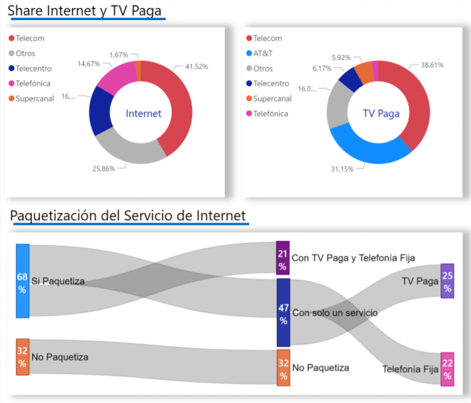 El informe de Cabase también incluyó un capítulo sobre los proveedores de servicios TIC y cómo se compone el mercado. Telecom lidera los mercados de Internet fija y TV paga, con una participación del 41,5% y 39%, respectivamente. Por otro lado, respecto de la paquetización de servicios -algo permitido gradualmente a partir de 2016-, un 68% combina el contrato de acceso a Internet con servicios adicionales (22%, con telefonía fija; 25%, con TV paga, y 21%, con ambos servicios).