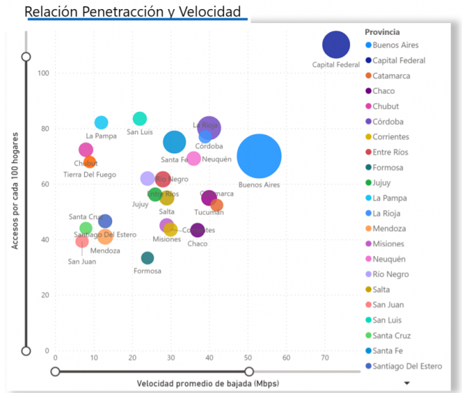 La mejor relación entre penetración y velocidad del país está, por lejos, en la Ciudad Autónoma de Buenos Aires, con una muy relevante posición de la provincia de Buenos Aires -la de mayor peso en cantidad de hogares conectados-. Formosa no tiene mala conectividad para los pocos que tienen acceso a Internet (a veces un dato sectorial puede decir mucho sobre el panorama general de un lugar). El subdesarrollo digital de una provincia rica como Mendoza sigue llamando la atención. Y también llama la atención que las causas que provocaron ese subdesarrollo no sean motivo de mayores estudios. Estrategias de desarrollo basadas en un papel activo del Estado provincial parecen dar buenos resultados en La Rioja y San Luis.